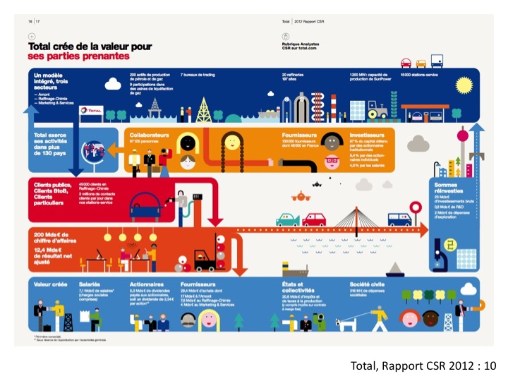 La représentation peut aussi se faire en terme de valeur ajoutée (financière ou non) pour les différentes parties prenantes reconnues par l’organisation :