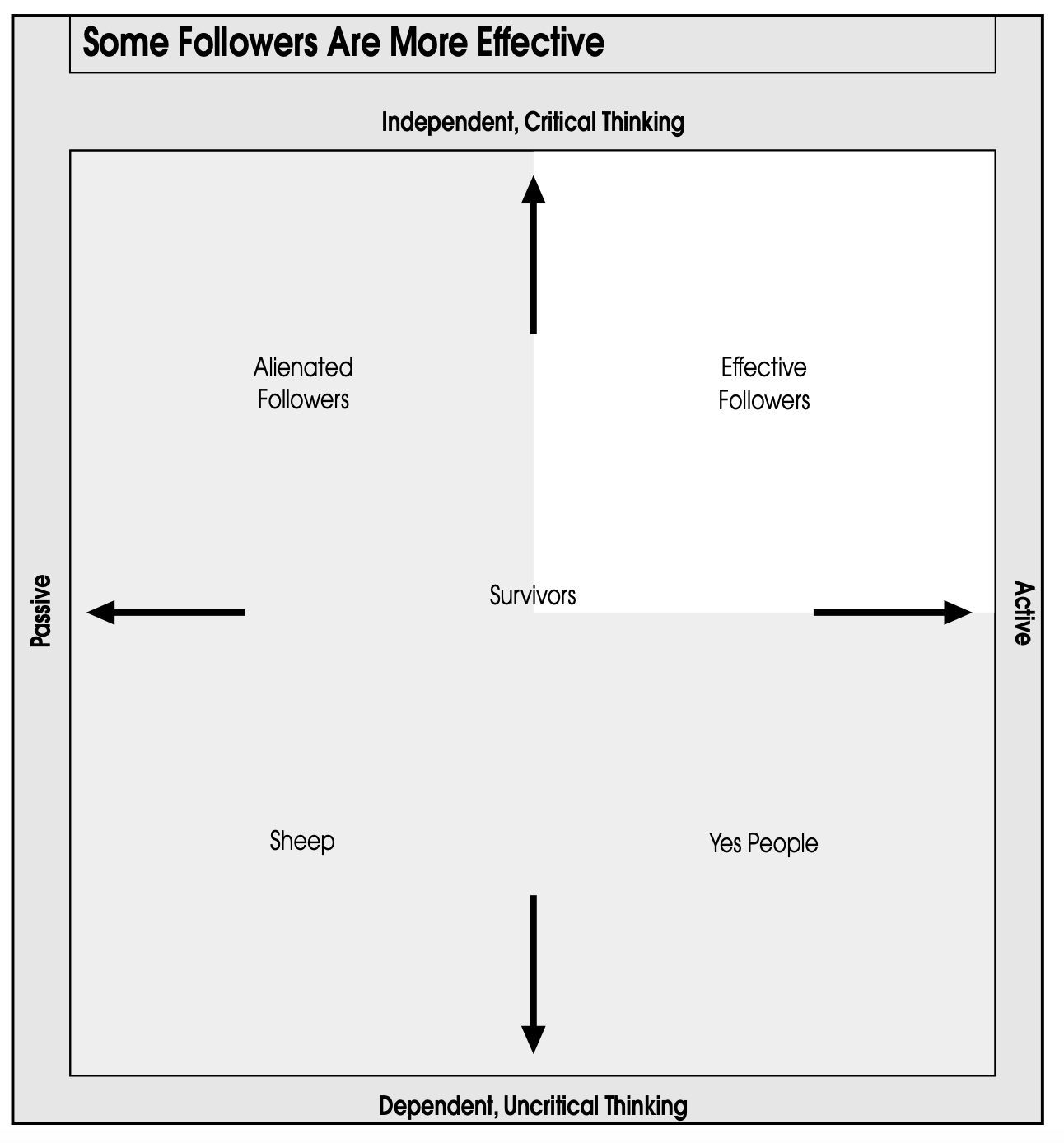 - Effective Followers, who think for themselves and carry out their duties and assignments with energy and assertiveness.